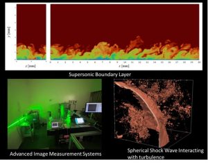 Our laboratory mainly studies the aerodynamics of high-speed flows related to the field of aerospace engineering. In particular, for the development of the next generation of passenger aircraft that will fly at speeds faster than the speed of sound, we are taking on the challenge of reducing frictional resistance on the aircraft and noise caused by shock waves generated by the aircraft, by making full use of advanced image measurement technology, large-scale numerical simulations, and data analysis based on AI technology. We are working on a wide range of topics, from elucidating fundamental physics to applied research.